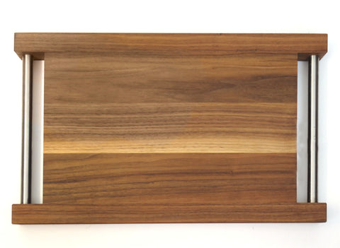 The Kate Duncan cutting board / serving tray / charcuterie plates are built like a cutting board but designed as a serving tray. With stainless steel handles inset into solid hardwood this piece is both functional in the kitchen and stunning in your home. Sleek and sturdy handles offer an easy way to move this piece from your kitchen counter, to the sink and dining table. Whether you’re preparing food in the kitchen or serving in the dining room this piece will accommodate a multitude of needs.