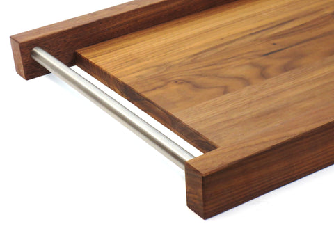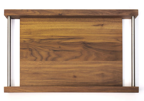 The Kate Duncan cutting board / serving tray / charcuterie plates are built like a cutting board but designed as a serving tray. With stainless steel handles inset into solid hardwood this piece is both functional in the kitchen and stunning in your home. Sleek and sturdy handles offer an easy way to move this piece from your kitchen counter, to the sink and dining table. Whether you’re preparing food in the kitchen or serving in the dining room this piece will accommodate a multitude of needs.